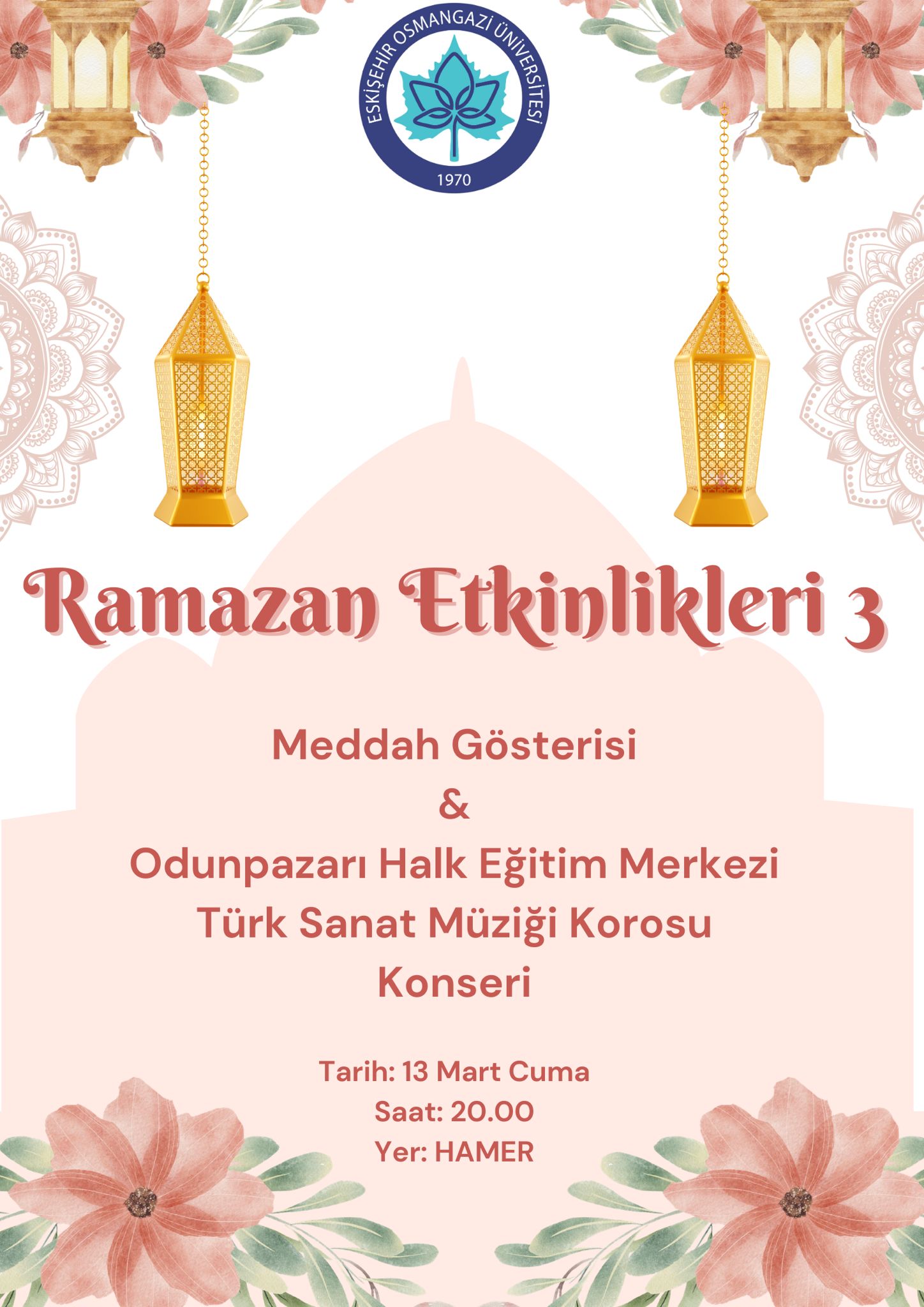 Eskişehir Osmangazi Üniversitesi Toplumsal Katkı Koordinatörlüğü ile Halkbilim Uygulama ve Araştırma Merkezi iş birliğinde düzenlenen ESOGÜ Ramazan Etkinlikleri’nin üçüncüsü, 13 Mart 2026 Cuma günü saat 20.00’de Halkbilim Uygulama ve Araştırma Merkezi’nde gerçekleştirilecektir.