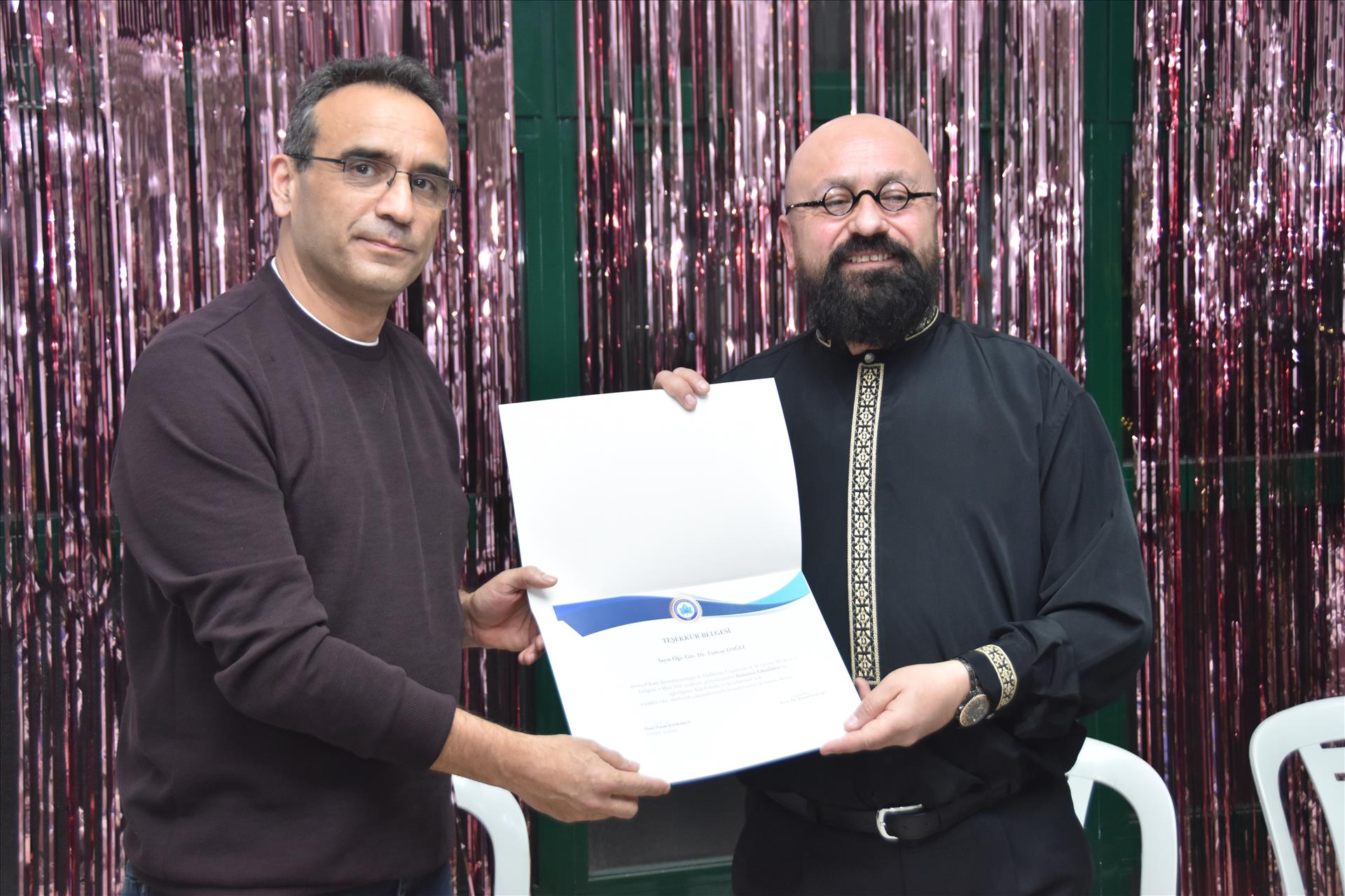 Programın sonunda etkinliğe katkılarından dolayı Öğr. Gör. Dr. Tuncay Dağlı’ya, Mübeccel Enönlü’ye ve Emine Sarıkaya’ya teşekkür belgeleri takdim edildi.