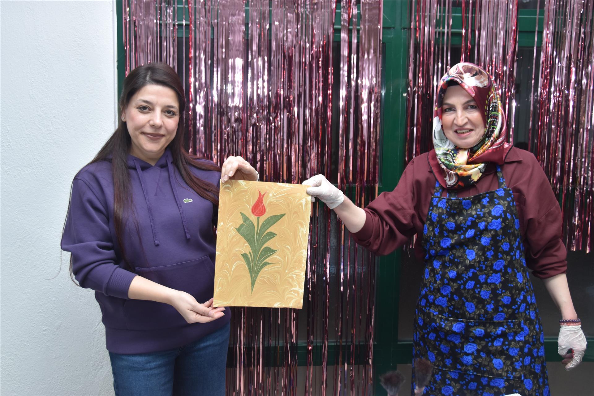 Programın bir diğer bölümünde ise Mübeccel Enönlü ve Emine Sarıkaya tarafından ebru sanatı hakkında bilgilendirme yapılarak uygulamalı bir tanıtım gerçekleştirildi. Etkinliğe katılan konuklara da ebru sanatını deneyimleme fırsatı sunuldu.